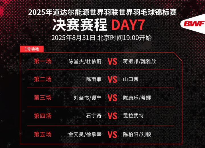 北京时分今天(31日)19:00体育录像/图片,2025年羽毛球世锦赛各单项决赛开战,国羽将冲击沿路五个单项冠军。